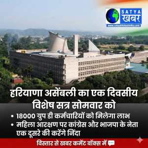 हरियाणा विधानसभा का एक दिवसीय विशेष सत्र सोमवार को, 18000 ग्रुप डी कर्मचारियों को मिलेगा लाभ